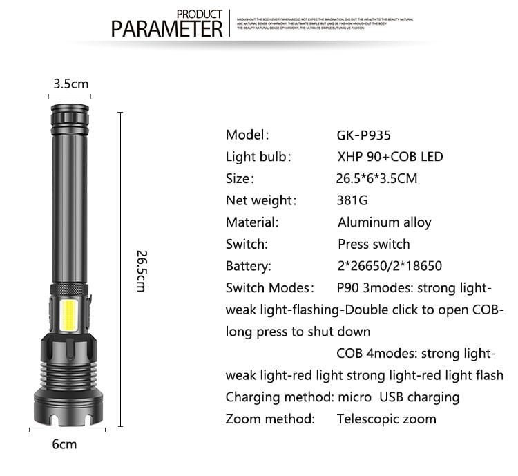 Amazing Illumination: With 6K Lumens. Professional LED flashlight is strong and sturdy.